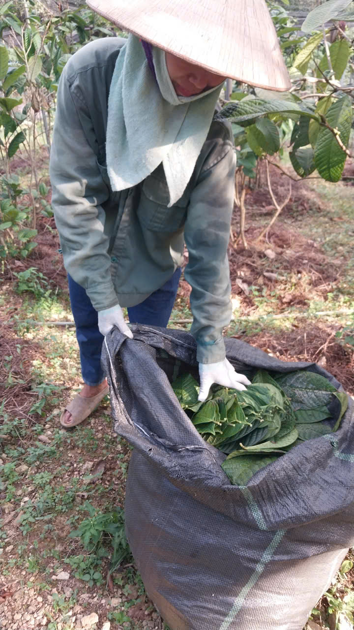 76 | Làm cỏ - Tién hành làm cỏ kết hợp xới xáo và tủ gốc cho cây trà bằng xác thực vật trong vườn |