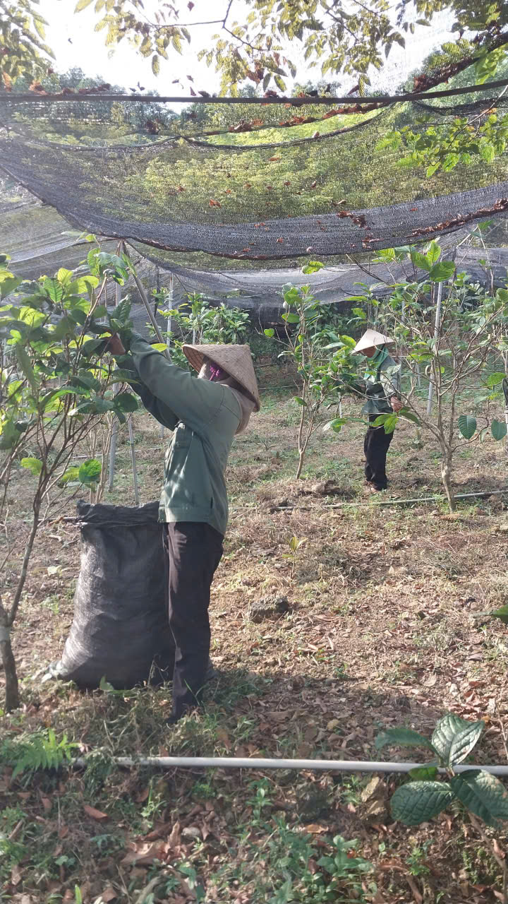 85 | Thu hoạch - Tiến hành thu hoạch hoa trà. Sử dụng phương pháp thu hoạch thủ công bằng tay và xuất bán dưới dạng sản phẩm tươi. Sau khi thu hoạch, hoa trà được bảo quan ở nhiệt độ thường, trong rổ thoáng khí, không đựng trong bao bọc nilon tránh khiến hoa bị hấp hơi nước và thâm đen, ảnh hưởng đến chất lượng của hoa trà. Hoa tươi sẽ được bọc vào túi giấy khi ship đến tay khách hàng. Tại thời điểm trước và sau khi thu hoạch: trời nhiều mây, có mưa phùn và độ ẩm cao trong đêm và sáng sớm, khoảng đến trưa trời tạnh mưa khô ráo tiến hàng thu hoạch hoa trà, nhiệt độ 16 – 19 độ. Tuy nhiên thời tiết không ảnh hưởng đến chất lượng của hoa trà do có lớp lưới che nắng phía trên. Tổng khối lượng thu hoạch 07/02/2025 là 20kg. |