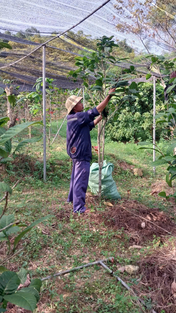 16 | Bảo vệ thực vật - Tiến hành phun chế phẩm sinh học Anisaf 01, 02 và 03 để phòng trừ các loại sâu hại, các bệnh về nấm và virus gây ra cho cây. Cách dùng: pha tỉ lệ 200ml mỗi loại chế phẩm /20 lít nước phun cho toàn bộ vườn |