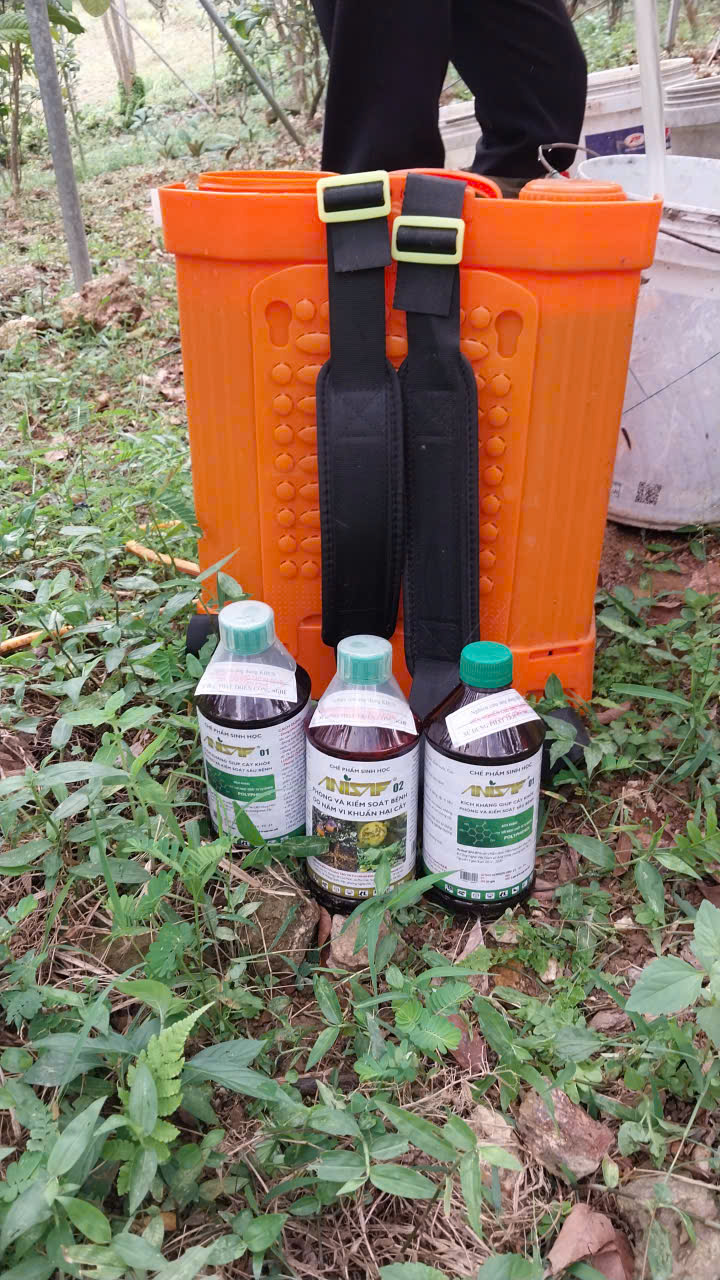 102 | Bảo vệ thực vật - Tiến hành phun chế phẩm sinh học trừ sâu thảo mộc kết hợp Anisaf 01, 02 và 03 cho cây trà. Cách dùng: pha tỉ lệ 80ml mỗi loại chế phẩm 01, 02, 03 vào chung một bình phun 20ml, tiến hành pha và phun cho các khu vực đã tiến hành thu hoạch lá. |