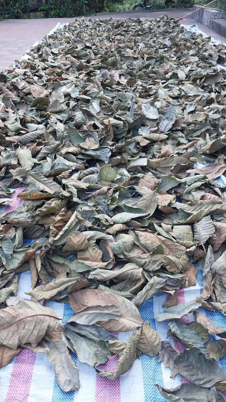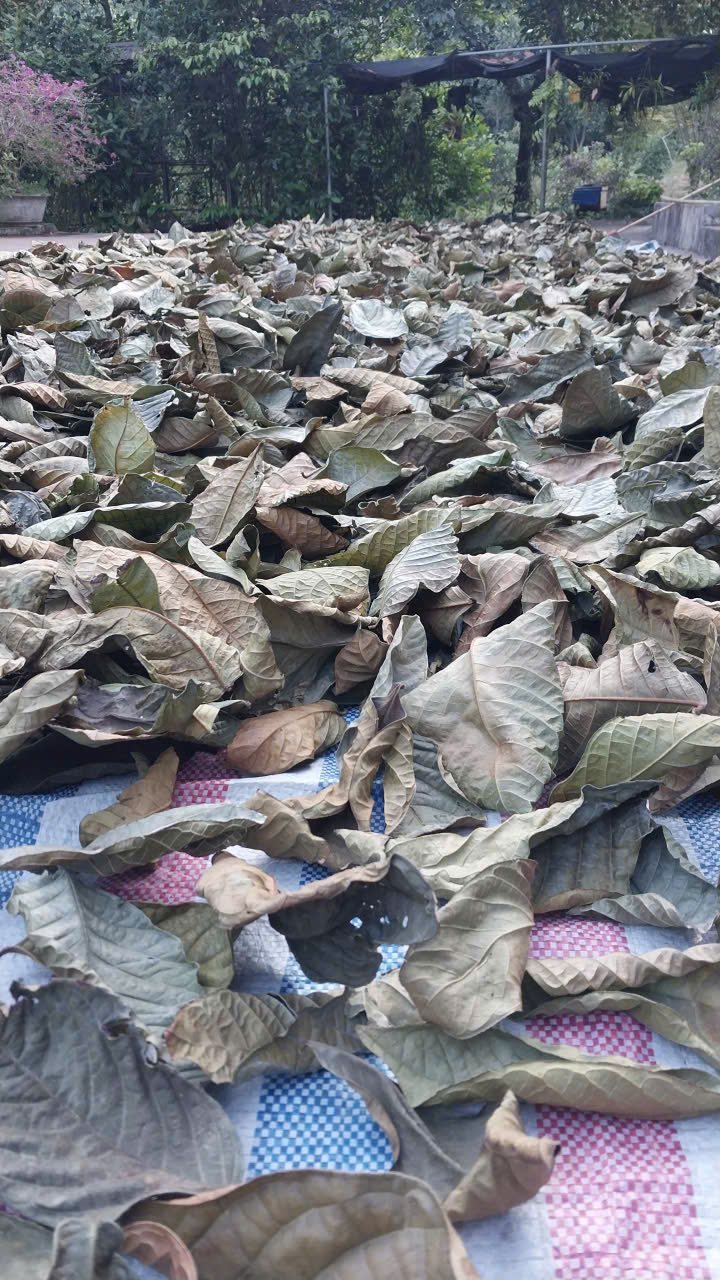 103 | Phơi sấy thủ công - Lá trà sau khi hái được phơi sấy thủ công trên 1 lớp bạt dứa và cách ly với khu chăn nuôi. Tổng khối lượng thu hoạch 5/9 sau khi phơi khô được 19kg lá trà khô. |
