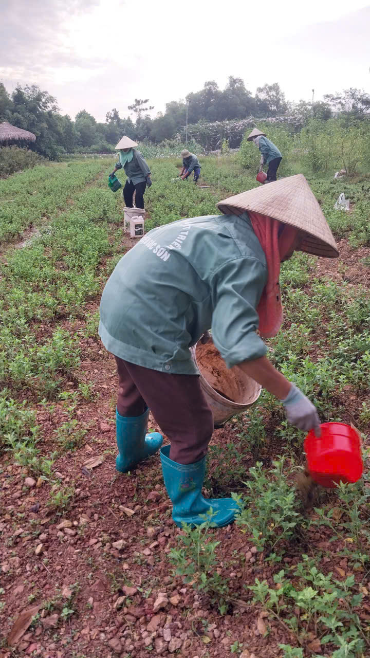 10 | Làm cỏ - Tiến hành làm cỏ cho cây Bạch cúc chi. Thời tiết mưa, đất ẩm thuận tiện cho việc làm cỏ. |