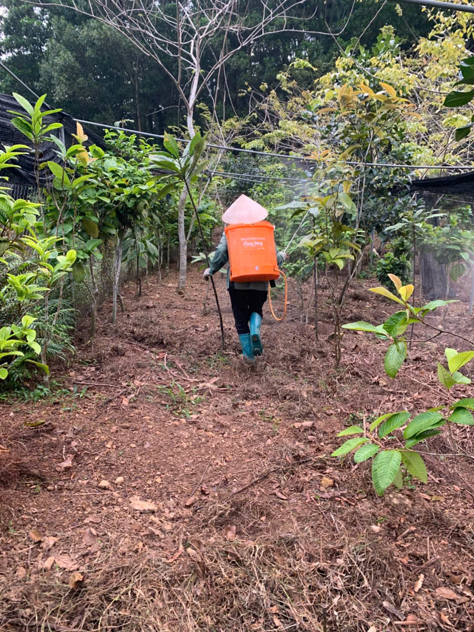 30-06-2024 12:06:00 Bảo vệ thực vật Tiến hành phun chế phẩm sinh học Anisaf 01 và 02 để phòng trừ các loại sâu hại, các bệnh về nấm và virus gây ra cho cây. Cách dùng: pha tỉ lệ 200ml mỗi loại chế phẩm /20 lít nước phun cho toàn bộ vườn Hoàn thành