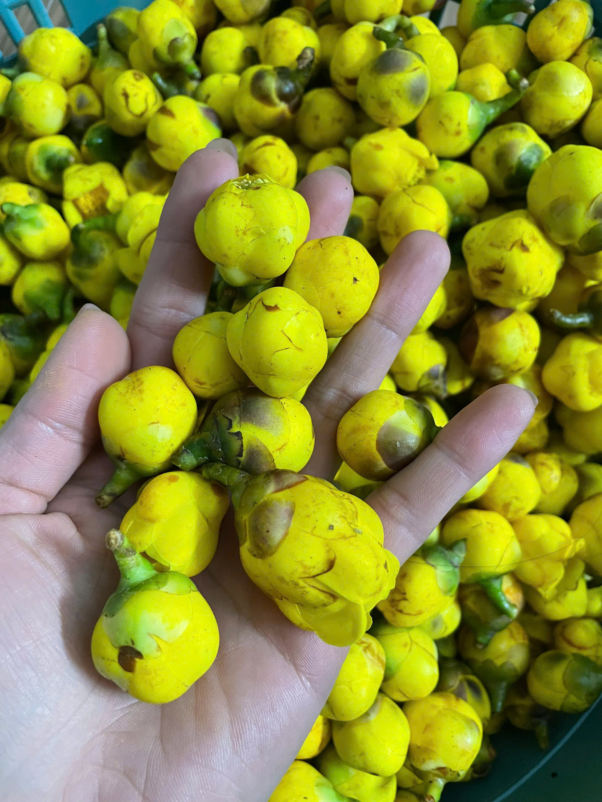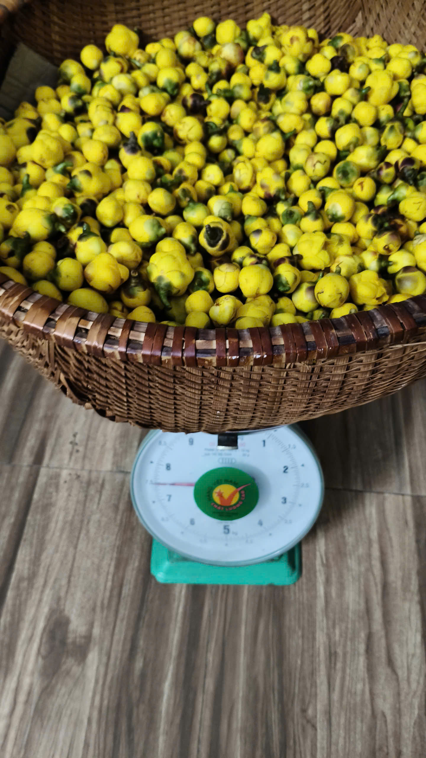 11-01-2025 12:01:00 Thu hoạch Tiến hành thu hoạch hoa Trà Hoa Vàng. Thu hoạch hoa để chế biến và sử dụng Trà Hoa Vàng chủ yếu là thu hái ở giai đoạn nụ, cần phải chú ý hái đúng thời điểm nụ trà phát triển đạt kích thước lớn nhất, tức là hoa phải đạt độ "chín" nhưng phải đảm bảo hoa trà chưa bung nở, vẫn giữ nguyên được đài hoa nhằm đảm bảo được hàm lượng hoạt chất trong hoa là lớn nhất mang lại giá trị cao nhất. Sử dụng phương pháp thu hoạch thủ công bằng tay. Tổng khối lượng thu hoạch ngày 11/01/2025 là 6kg hoa tươi. Sau khi thu về được đựng trong thùng carton để hoa không bị bí hơi, mất màu và được sấy thăng hoa để bảo quản. Tại thời điểm trước và sau khu thu hoạch thời tiết thuận lợi, có nắng nhẹ, khô ráo, độ ẩm thấp 41%, nhiệt độ 9 - 20 độ. Hoàn thành