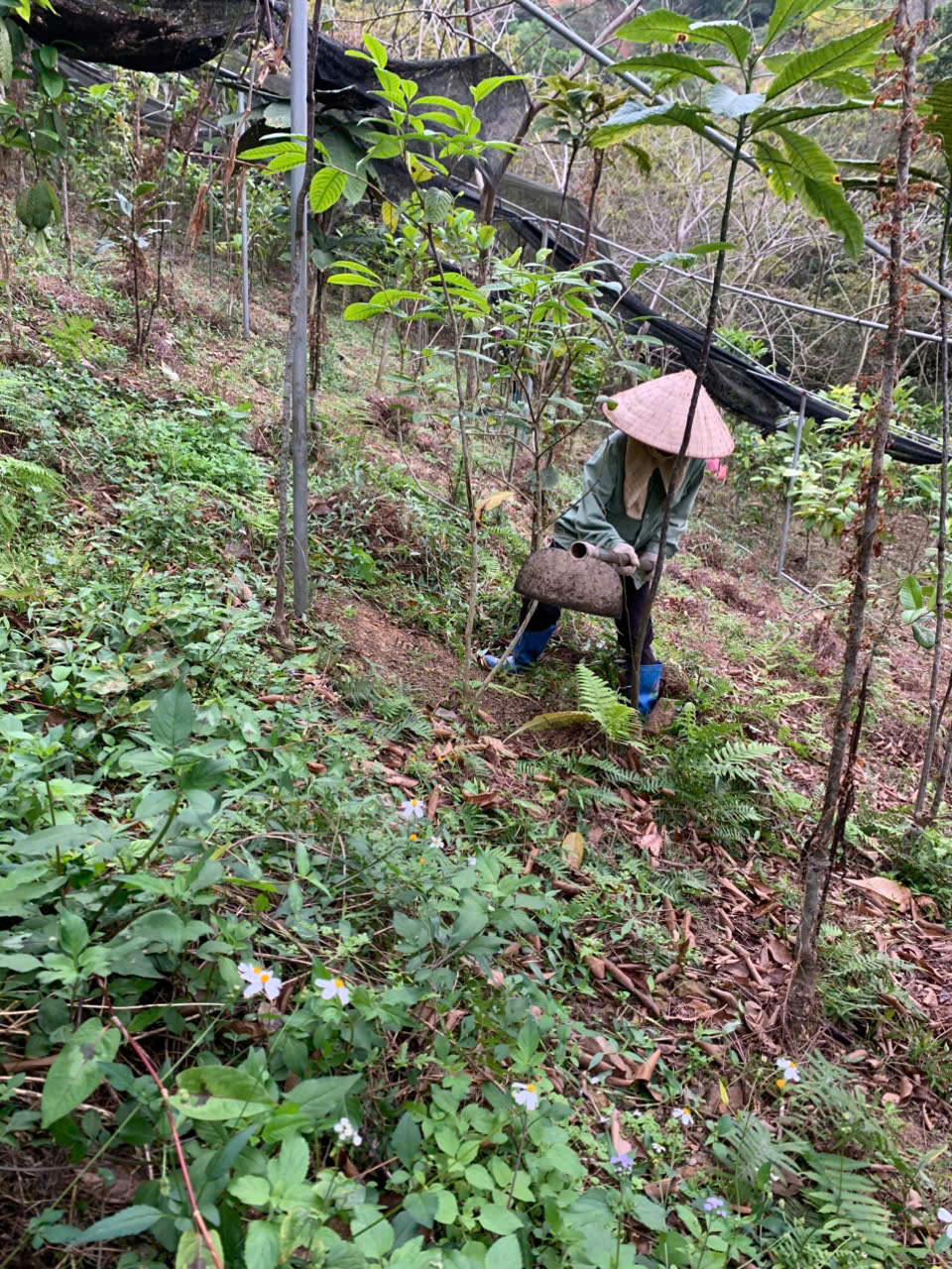 10-05-2024 12:05:00 Làm cỏ Tiến hành làm cỏ bằng tay kết hợp xới xáo cho một số khu vực của vườn trà. Dọn sạch cỏ dại, thực bì quanh gốc, đường kính 1m. Hoàn thành