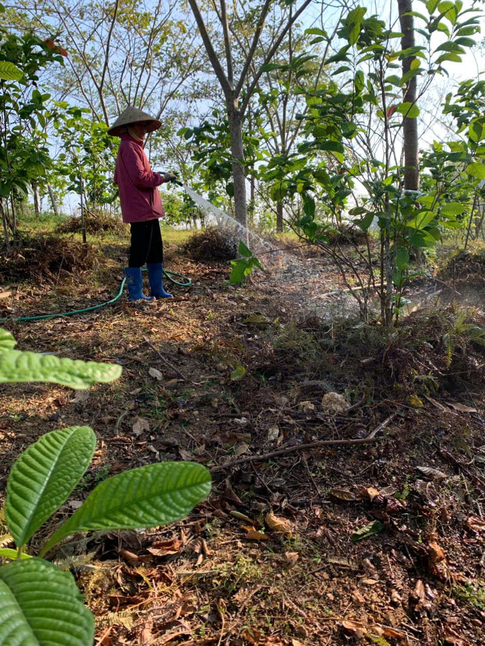 25-03-2025 12:03:00 Tưới nước Tiến hành tưới nước cho toàn bộ các khu vực trồng cây trà vào buổi sáng bằng hệ thống kéo ống dẫn nước thủ công. Hoàn thành